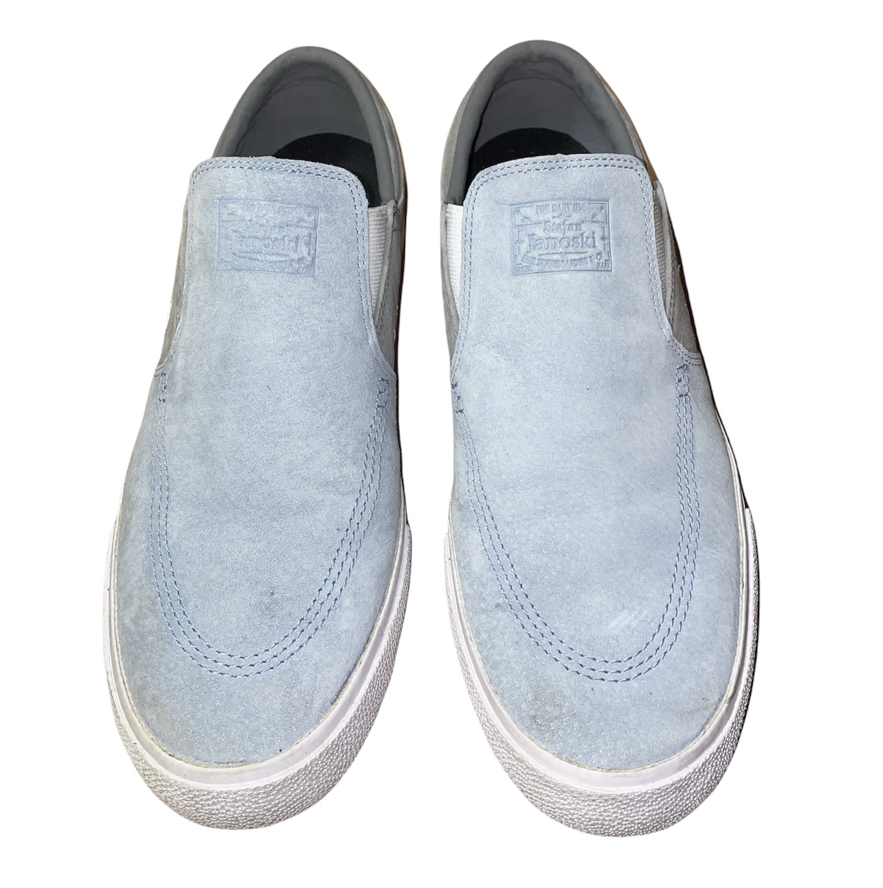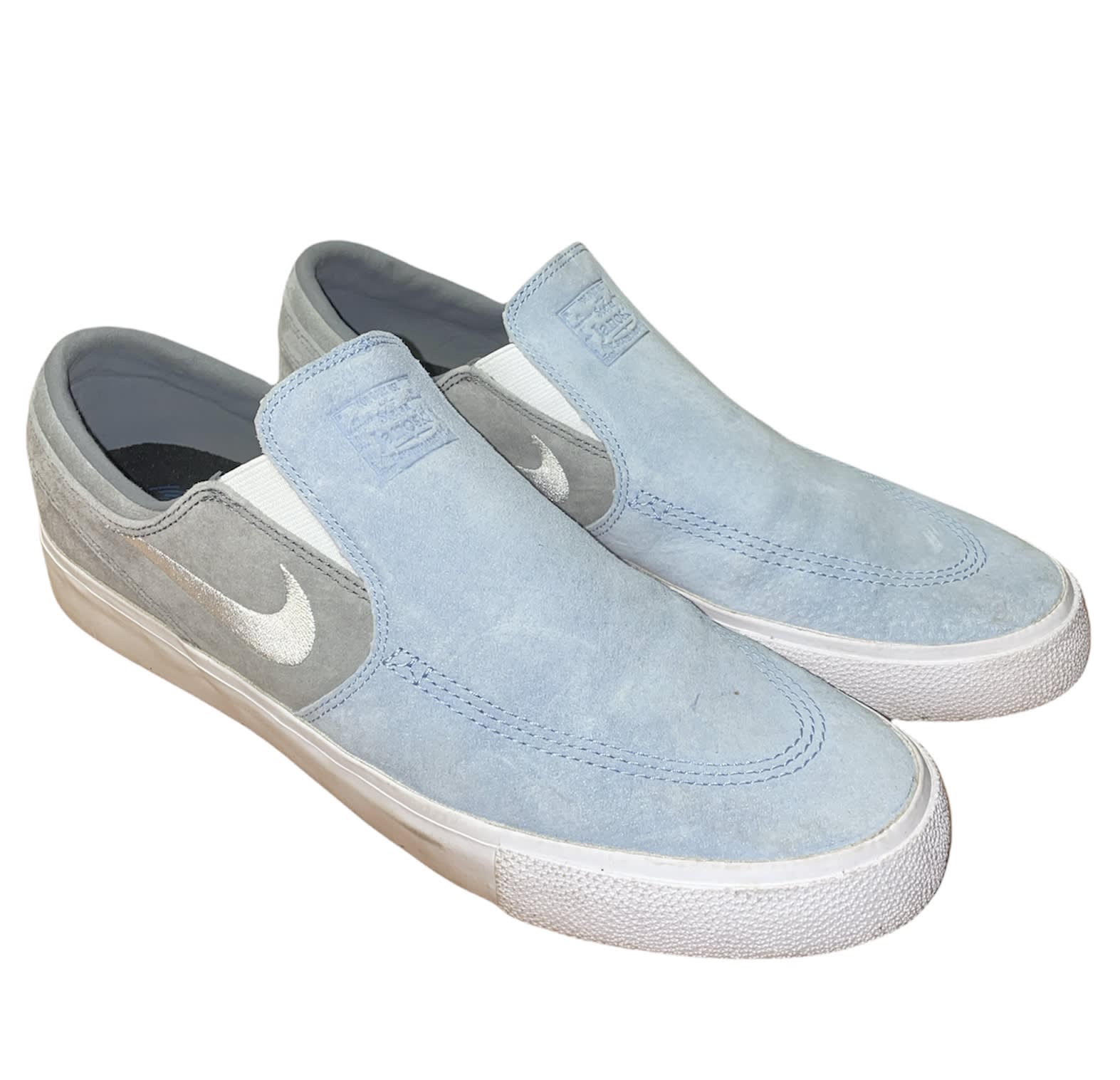 Custom Nike Stefan Janoski Slip-ons - white, blue and grey - only used once - brand new condition - real retail price £99 - pls message before buying - DM with offers on here or ig @ravihandrade_