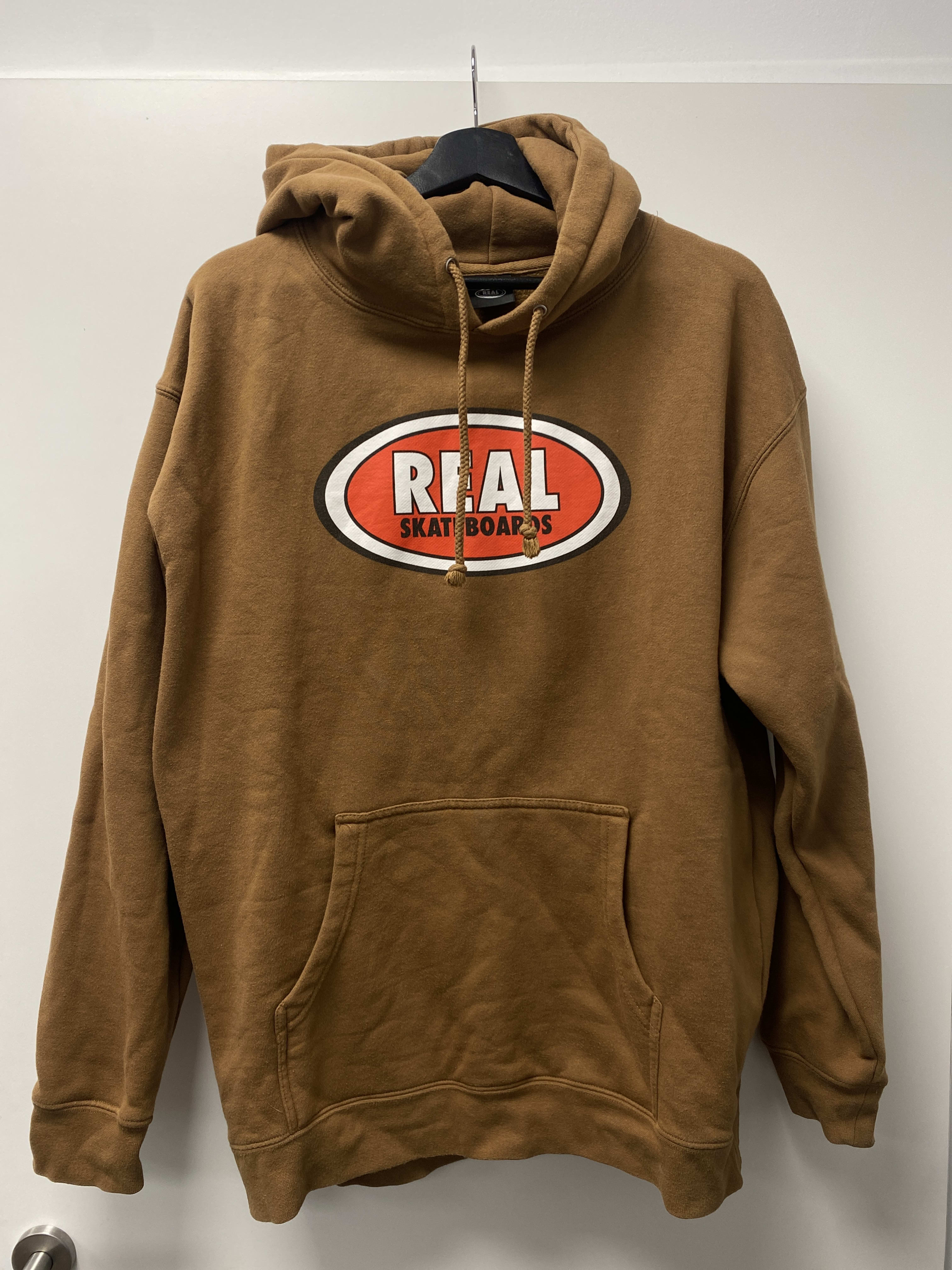 Real Skateboards Hoddie with Logo Print Colour: Light Brown Con: 10/10